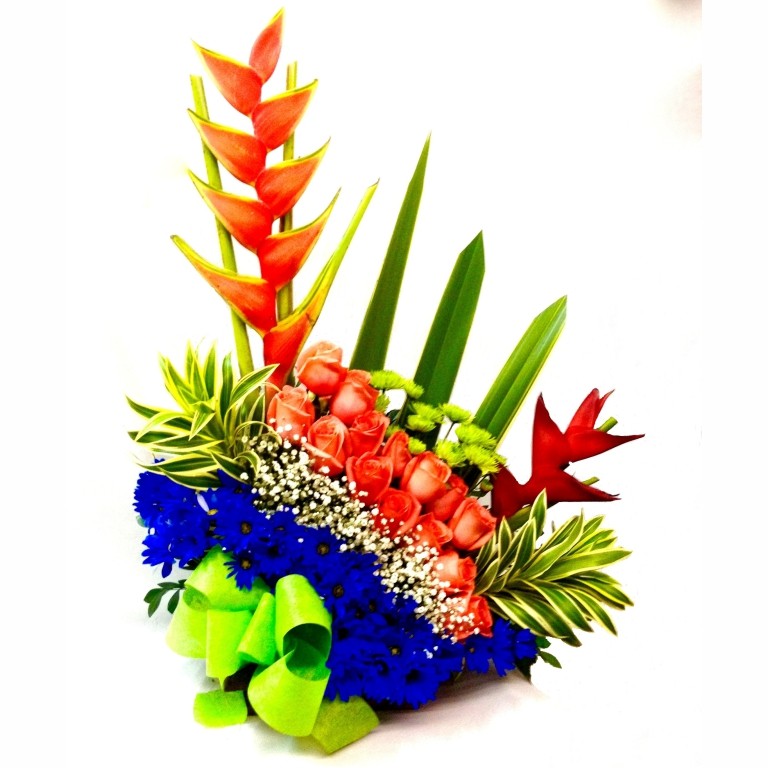 Un arreglo floral que combina los colores más vivos de las flores tropicales…. que mejor manera de empezar su día!