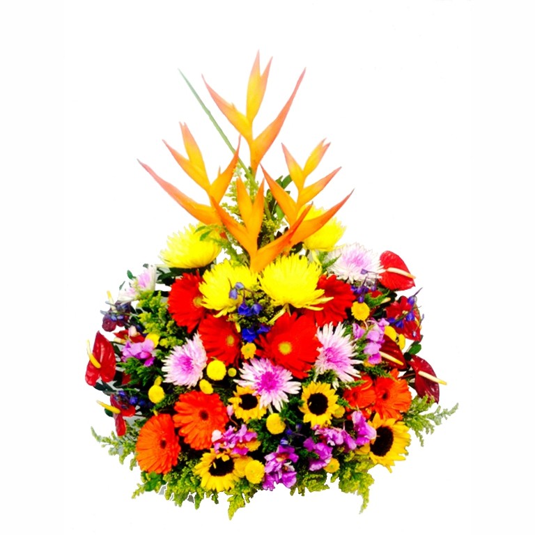 Detalles: Flores tropicales, follaje, flores complementarias.