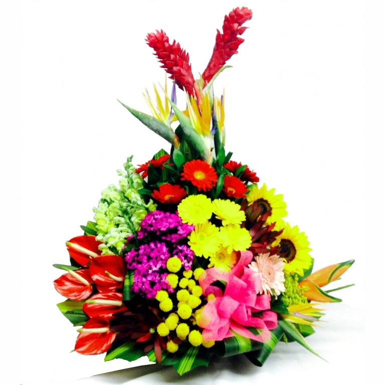 Un arreglo que combina los alegres e intensos colores de las flores tropicales con la exuberancia de las flores exóticas, sencillamente espectacular!